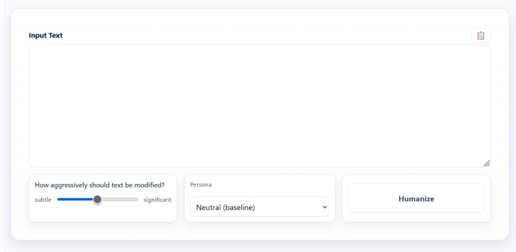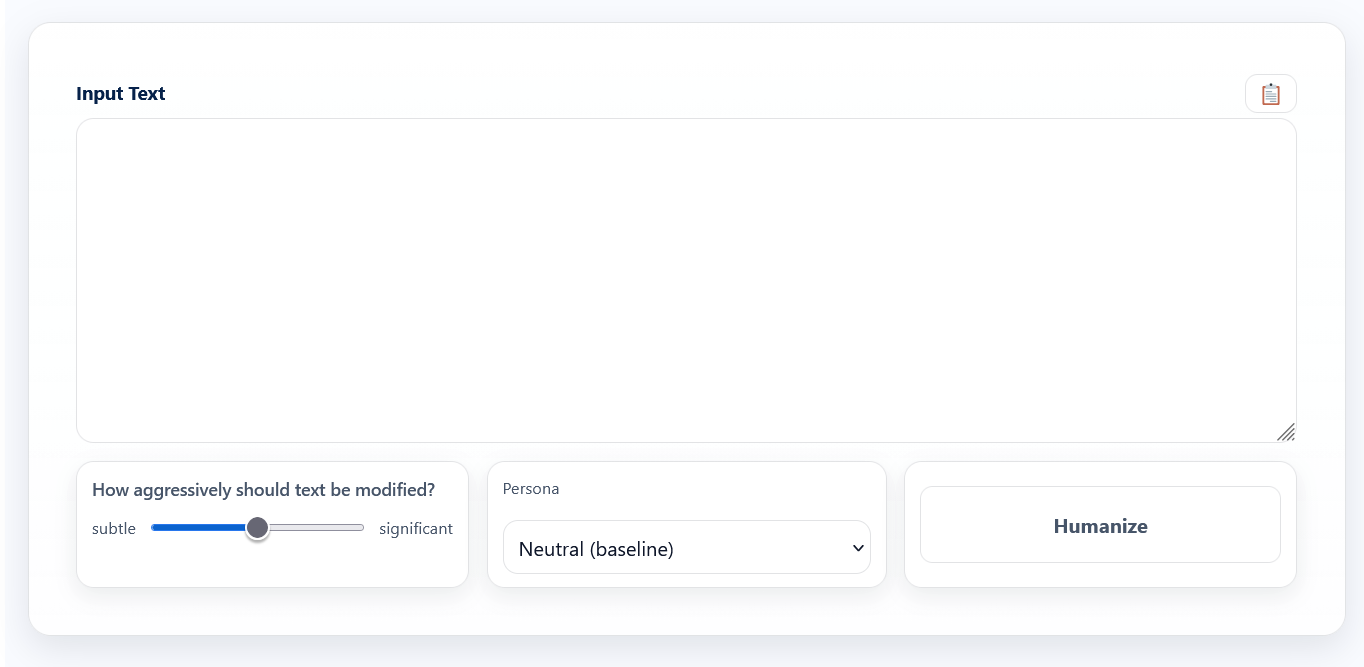 AI Humanizer is a tool I created to make LLM generated content sound more natural by removing common indicators of AI created text. The idea is that you can run your AI written documents through the humanizer, and it automatically gives you something that sounds more natural than what you started with.